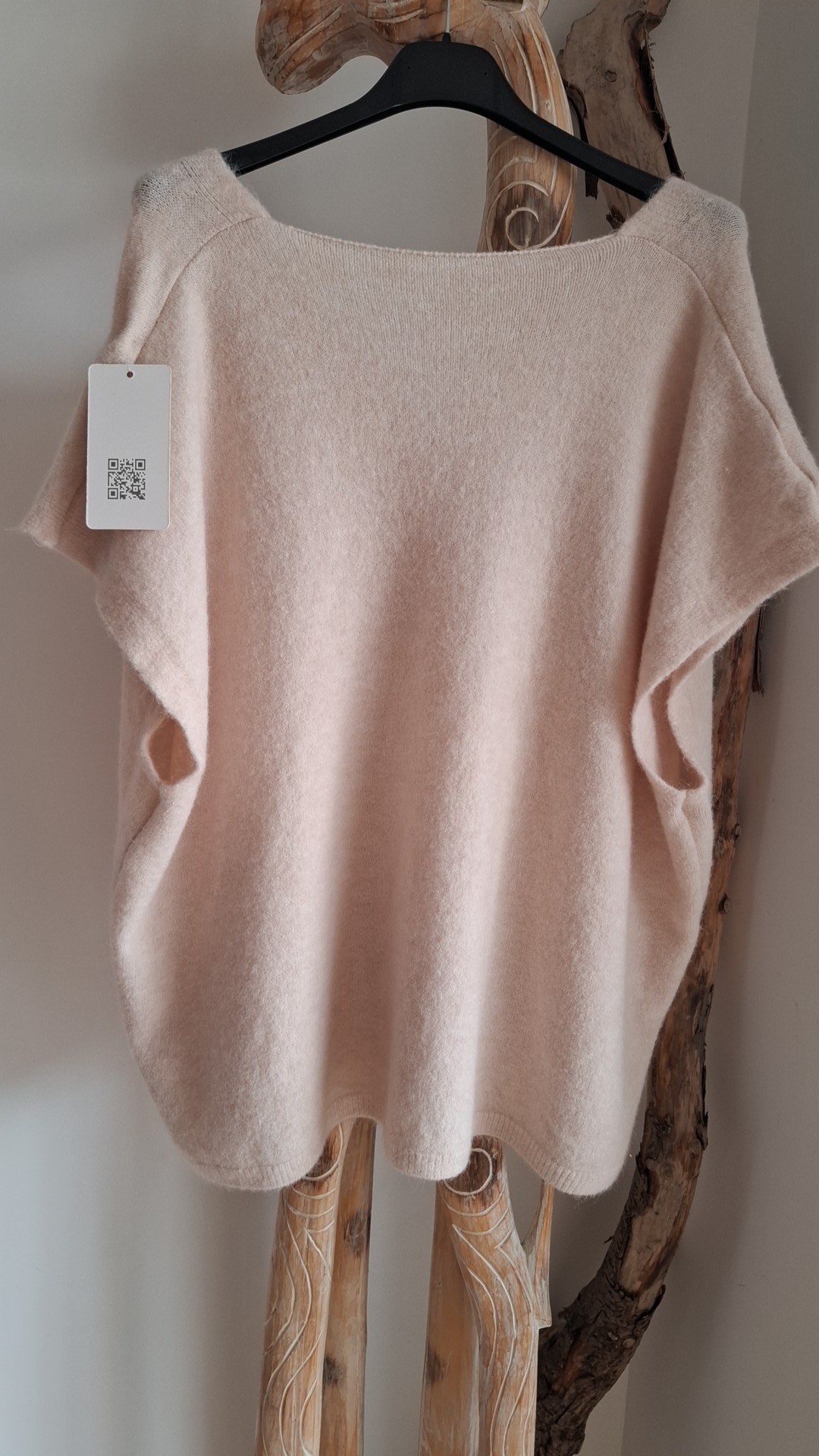 Tricot fin emmanchures larges et tombantes, finition en bords côtés très fins.