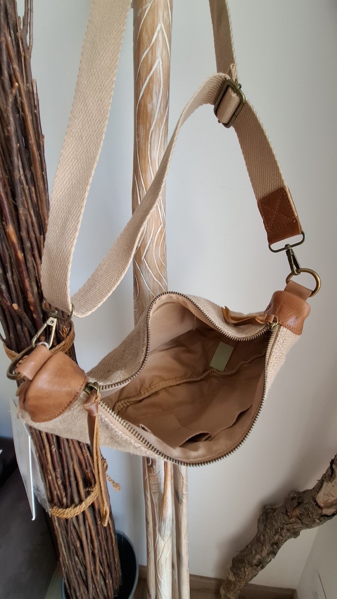 Sac banane beige en toile de jute